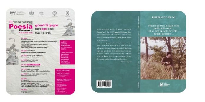 Un poeta a 50 anni dalla prima pubblicazione che viene riproposta con forti varianti e alcuni inediti. Pierfranco Bruni con “Ritagli di tempo…”, edito da Pellegrini in occasione proprio del cinquantesimo della prima edizione. Un viaggio nel tempo come la poesia enuclea… La sua presenza è fissata per il pomeriggio di giovedì 12 Giugno.