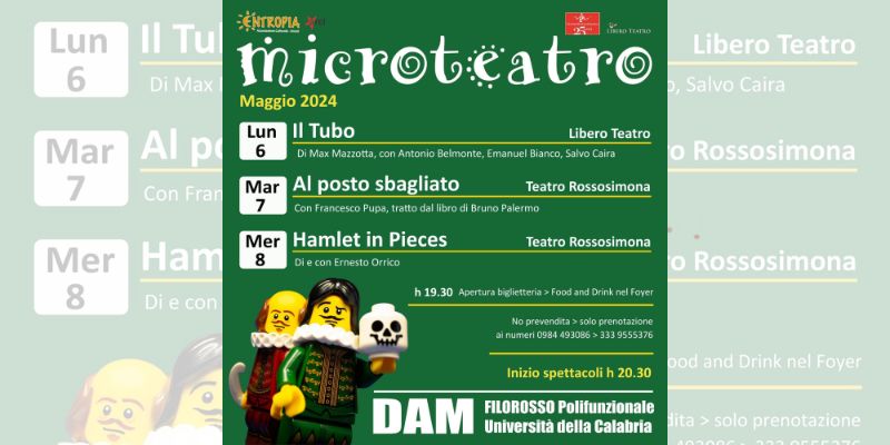 Si alza il sipario del Dam su Microteatro, rassegna di teatro e socialità organizzata dall’associazione Entropia in collaborazione con le compagnie Libero Teatro e Rossosimona.