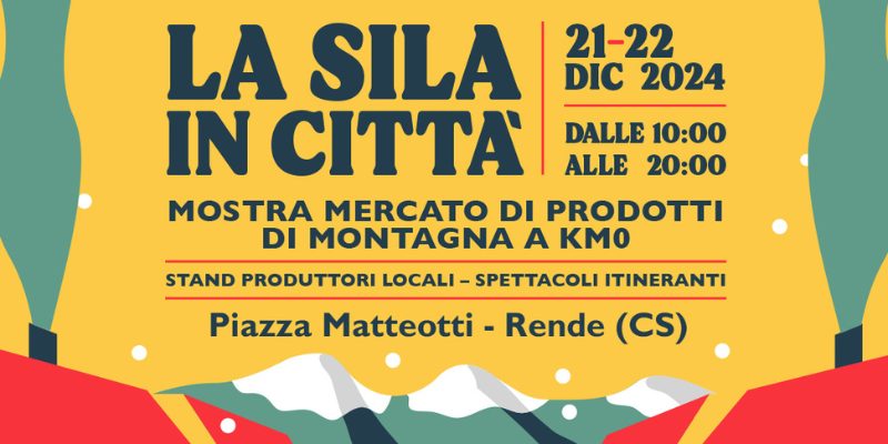 Il Gal Sila è lieto di annunciare l’evento “LA SILA IN CITTÀ”, che si terrà il 21 e 22 dicembre in Piazza Matteotti a Rende. Promosso dal Gal Sila e realizzato all’interno del progetto di cooperazione “Filiere corte e mercati locali”, a valere sulla misura 19.3 del PSR Calabria 2014-2022, l’evento è patrocinato dal Comune di Rende.