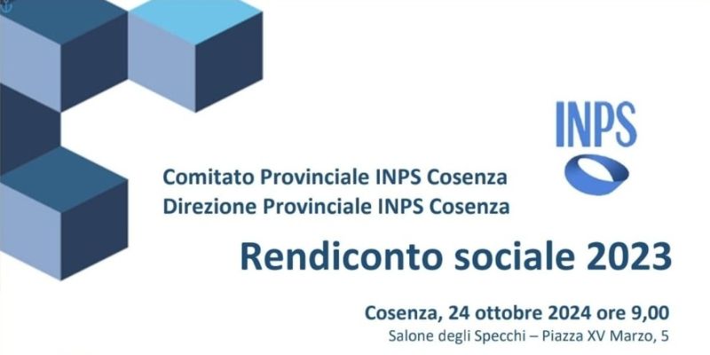 Appuntamento pubblico importante, dunque, previsto per giovedì prossimo, 24 ottobre ore 9, nel bellissimo salone degli specchi alla Provincia di Cosenza per la presentazione del Rendiconto sociale 2023. Oltre ai saluti del presidente della Provincia, Rosaria Succurro, e del direttore regionale dell’Inps, Giuseppe Greco, sono previste, dopo l’intervento introduttivo di Vincenzo Grillo, presidente del comitato provinciale, le relazioni di Angelo Maria Manna, direttore provinciale dell’Inps e Maria Mirabelli, docente di sociologia politica all’Unical.
