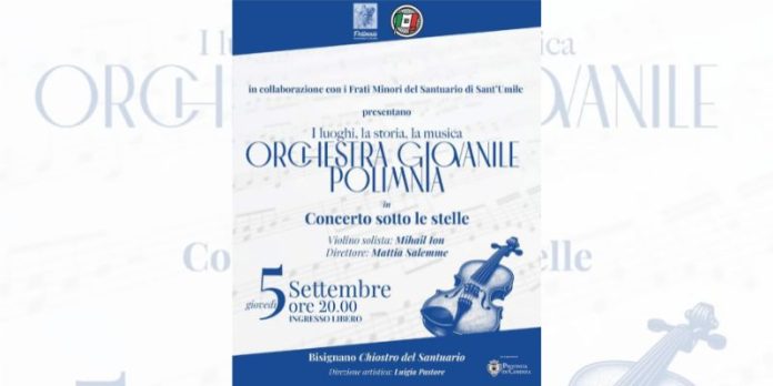 In scena a Bisignano giovedi 5 settembre 2024, nella splendida cornice del Chiostro del Santuario di Sant’Umile l’Orchestra Giovanile Polimnia in “Concerto Sotto le Stelle”, diretta dal maestro Mattia Salemme e con la direzione artistica di Luigia Pastore.