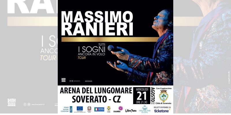 “La presenza di artisti della caratura di Massimo Ranieri ci riempie di orgoglio. Rappresenta un evento importante – dichiara il sindaco di Soverato, Daniele Vacca – all’interno di una ricca programmazione estiva, pensata e realizzata con l’intento di soddisfare i “gusti” dei cittadini e dei turisti di tutte l’età che decideranno di scegliere Soverato come meta per le proprie vacanze”.