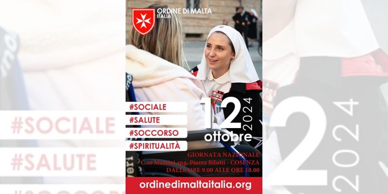 La città di Cosenza ospiterà, sabato 12 ottobre, in corso Mazzini e Piazza Bilotti, la Giornata Nazionale dell’Ordine di Malta. L’evento si svolgerà in 35 piazze in tutta Italia dove, come è ormai consuetudine, membri e volontari dell’antico ordine religioso-laicale e ospedaliero, faranno conoscere l’impegno medico, sociale ed umanitario svolto quotidianamente, al servizio delle persone e delle famiglie in stato di necessità.