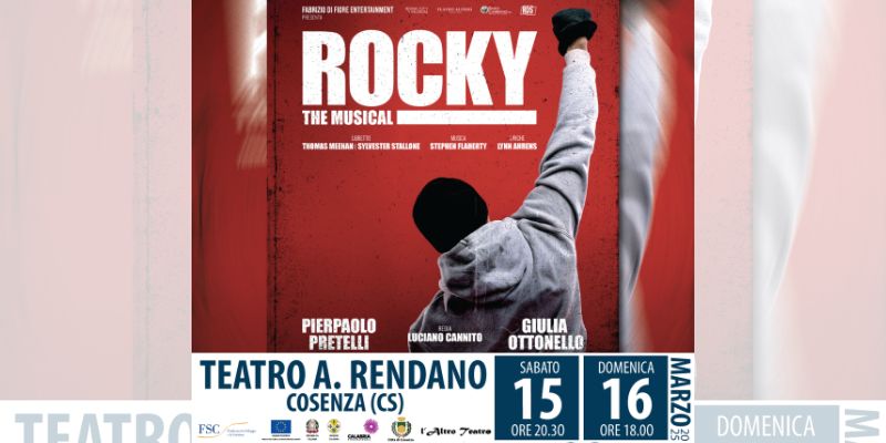 Sabato 15 marzo, ore 20.30, e domenica 16 marzo, ore 18.00, al Teatro Alfonso Rendano di Cosenza andrà in scena “Rocky-The Musical”, ispirato al celebre film di Sylvester Stallone. Unica tappa calabrese di un musical emozionante, con orchestra dal vivo, che celebra la forza di volontà, il sacrificio e l’amore. Rocky Balboa torna sul ring e ad interpretare il ruolo per pugile di Filadelfia è Pierpaolo Pretelli, che dopo il successo televisivo si cimenta per la prima volta con il teatro. Al suo fianco, Giulia Ottonello nei panni di Adriana. La regia è affidata a Luciano Cannito che dopo i successi di “Sette spose per sette fratelli”, “Cabaret” e “Saranno Famosi” si conferma una delle firme di spicco del nuovo musical italiano.