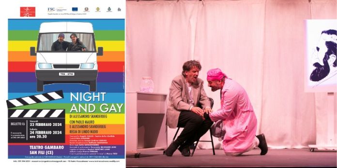 Per il secondo appuntamento del cartellone, venerdì 23 e sabato 24 febbraio alle 20.30, tornano sul palcoscenico del teatro “F. Gambaro” di San Fili gli attori Paolo Mauro e Alessandro Skanderbeg, interpreti di “Night and Gay”, commedia romantica a tema sociale in scena con la regia di Lindo Nudo che ha debuttato proprio a San Fili lo scorso 9 dicembre.