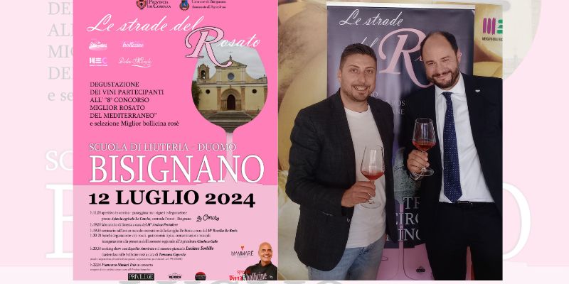 “Le Strade del Rosato” in tour arriva per il primo anno il 12 luglio 2024 a Bisignano. La rassegna enologica aperta a tutti, è promossa dall’associazione culturale Città Futura e dal team Bollizine guidato dal giornalista e sommelier Tommaso Caporale con il patrocinio del Comune di Bisignano e della Provincia di Cosenza.