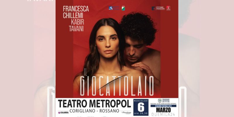 Continua a riscuotere un grande interesse la “Rassegna L’Altro Teatro – On Stage Metropol”, curata da Gianluigi Fabiano e Giuseppe Citrigno. Il quarto appuntamento della stagione è fissato per mercoledì 6 marzo, alle ore 20.30. Sul palco del Cinema Teatro Metropol di Corigliano Rossano andrà in scena “Il Giocattolaio” con Francesca Chillemi e Kabir Tavani.