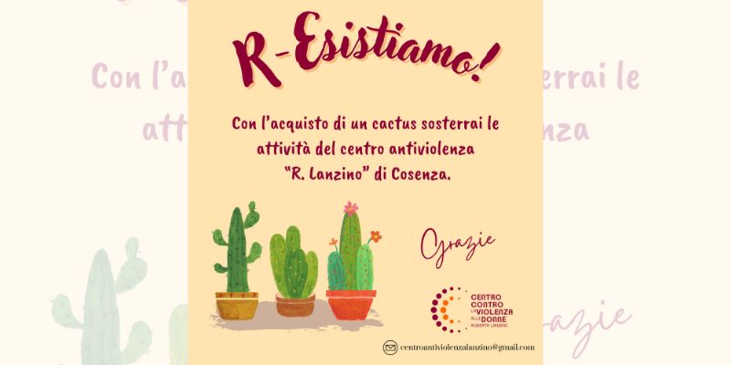 L’inadeguatezza di un welfare che non fa che aumentare la differenza tra classi sociali, acuisce l’impossibilità per le donne di conciliare i tempi di cura e lavoro. Si allarga così il divario sociale tra generi invece di far posto a misure più incisive e meno familistiche che incentivino politiche in grado di offrire una educazione alle differenze, percorsi di emancipazione delle donne, un sistemico sostegno ai centri antiviolenza e alle attività di supporto al percorso di fuoriuscita dalla violenza delle vittime. La campagna “R-esistiamo” del CAV “R. Lanzino” è , perciò, linfa vitale, goccia capace di dissetare il cactus per vederlo rifiorire.