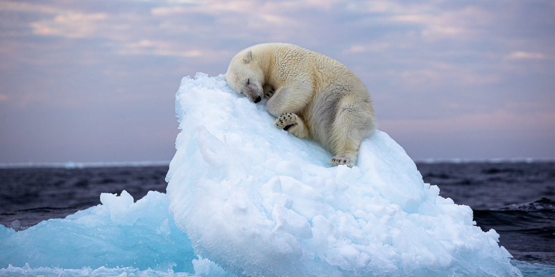 La foto vincitrice, intitolata “Il letto di ghiaccio”, ritrae un orso bianco. L’animale è immortalato intento a dormire su un iceberg alla deriva. L’autore della fotografia, Nima Sarikhani, ha realizzato lo scatto nell’arcipelago delle Svalbard, in Norvegia.