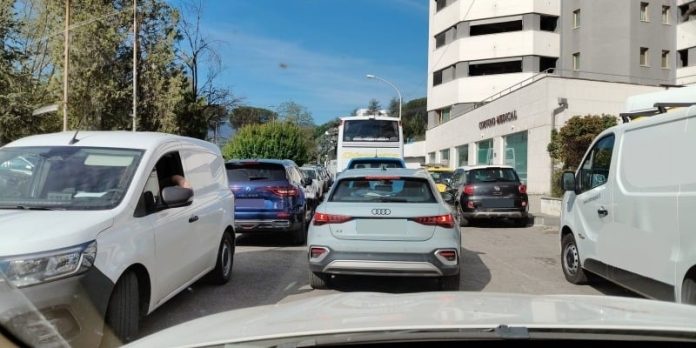Il problema nasce nelle prime ore del mattino, quando decine di autobus stazionano sul piazzale e lungo la carreggiata in attesa della partenza. Via dell’Accoglienza, una zona già densamente abitata, si ritrova improvvisamente blindata.