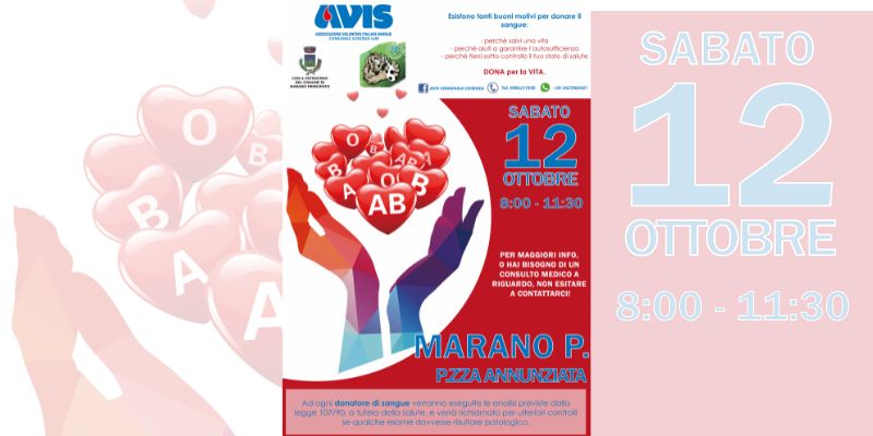 L’ASD Marano Principato Futsal, in collaborazione con Avis Cosenza e con il patrocinio del Comune di Marano Principato, invita tutti i cittadini e non, a partecipare attivamente alla raccolta sangue che si terrà sabato 12 ottobre. Questa è un’opportunità unica per fare la differenza nella vita di chi ha bisogno!