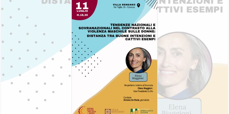 Uno sguardo sovranazionale sui diritti delle donne in tema di violenza di genere: le donne del CAV “R. Lanzino” dialogheranno insieme all’avvocata Elena Biaggioni, partendo dall’Italia giovedì undici luglio alle 18,30 a Villa Rendano.