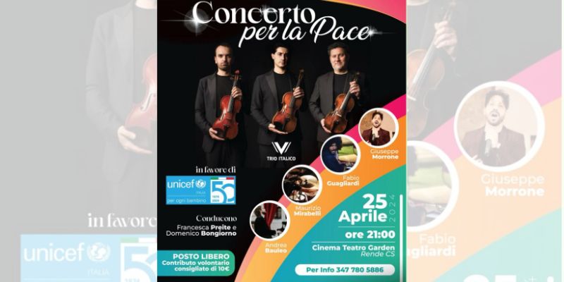 La musica ha il potere di unire le persone, superare le barriere e parlare direttamente al cuore. Il Trio Italico, composto da Antonio De Paoli, Pasquale Allegretti Gravina e Andrea Micieli, insieme a un talentuoso ensemble di musicisti, terrà il “Concerto per la pace” il 25 aprile (ore 21) presso il Cinema Teatro Garden di Rende. Il mondo della musica si unisce per una serata indimenticabile all’insegna della pace e della solidarietà. L’evento, organizzato dalla delegazione Cosenza-Tropea di Ambiente Mare Italia (AMI) e dall’associazione Harmonia, è stato voluto dal Trio Italico con l’obiettivo di raccogliere fondi per sostenere i bambini di Gaza attraverso l’Unicef.