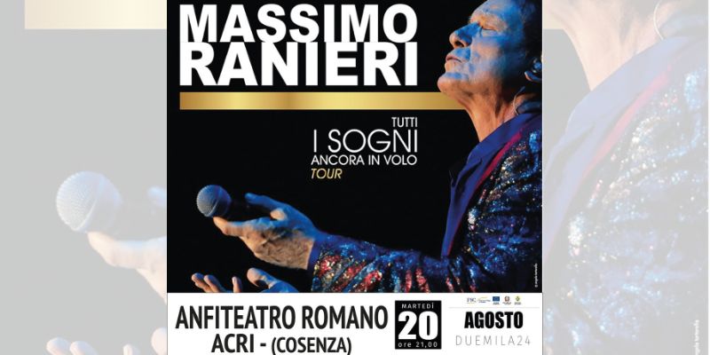 Massimo Ranieri torna in Calabria. Dopo i quattro sold out del tour invernale a Cosenza, Corigliano Rossano e Reggio Calabria, il cantautore napoletano il 20 agosto farà tappa all’Anfiteatro Romano di Acri.