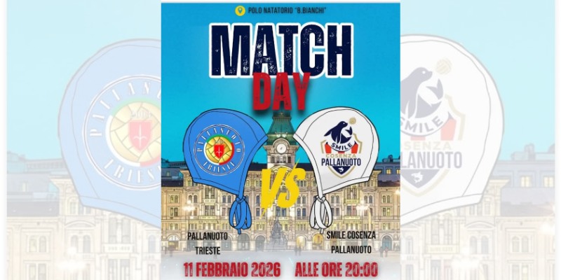 Riparte la corsa della Smile Cosenza Pallanuoto. Dopo la lunga pausa dedicata agli Europei, il campionato di Serie A1 femminile torna in vasca con la prima giornata del girone di ritorno. Il sette cosentino sarà impegnato mercoledì 11 febbraio alle ore 20.00 nella difficile trasferta di Trieste, dove affronterà la formazione friulana in un match che si preannuncia intenso e importante per il prosieguo della stagione.
