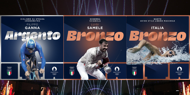 L’altro bronzo di giornata per l’Italia a Parigi arriva nella staffetta 4X100 stile libero uomini. Gli azzurri Alessandro Miressi, Thomas Ceccon, Paolo Conte Bonin e Manuel Frigo chiudono al terzo posto alle spalle degli Stati Uniti, oro (3’09’’28), e Australia, argento (3’10’’35).