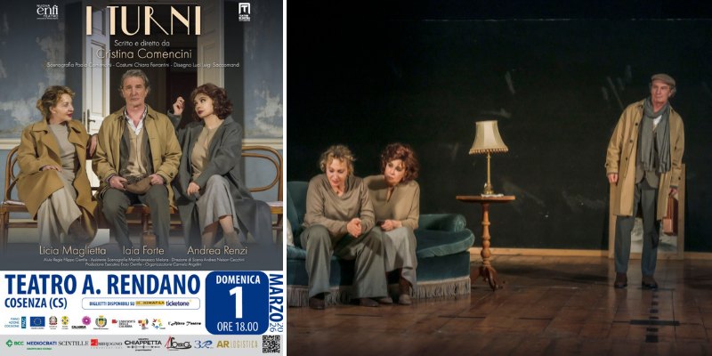 Prima nazionale al Teatro Alfonso Rendano di Cosenza per la commedia “I Turni”, scritta e diretta da Cristina Comencini, che andrà in scena domenica 1 marzo, alle ore 18.00, nell’ambito della Rassegna “L’Altro Teatro” curata da Gianluigi Fabiano. Sul palco tre protagonisti della scena teatrale e cinematografica: Iaia Forte, Licia Maglietta e Andrea Renzi.