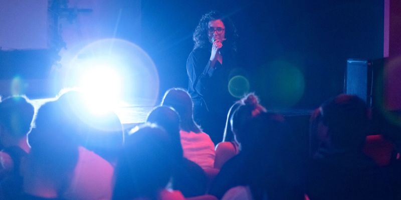 “Racconto cosmicomico” è una produzione SpazioTeatro tratta dall’opera di Italo Calvino, con l’interpretazione di Anna Calarco e il paesaggio sonoro costruito dal vivo da Giuseppe Costa; ad arricchire la narrazione, gli interventi fuori campo e la consulenza scientifica dell’astrofisico e divulgatore Filippo Bonaventura. Il punto di partenza è un personaggio palindromo, impronunciabile e irrappresentabile; a volte corporeo, a volte astratto, a volte bambino o mollusco, QfWfq afferma di essere stato protagonista di tutto: dal Big Bang alla formazione del sistema solare, dallo sviluppo del primo apparato visivo alle enormi, spaventose galassie infestate da buchi neri giganteschi.