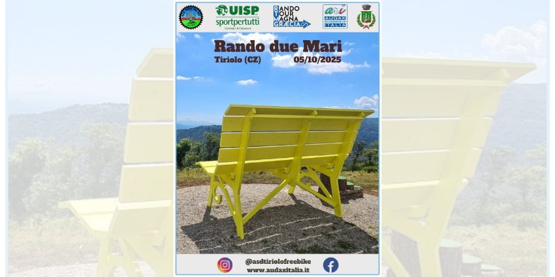 Domenica 5 ottobre si è svolta la Randonnée dei Due Mari. La prova di regolarità in bici è partita da Tiriolo, in provincia di Catanzaro, con modalità scaglionata, “alla francese” (partenza possibile tra le 07:30 e le 08:30). Prova del calendario ARI (Audax Randonneur Italia), organizzata dalla ASD Tiriolo Free Bike.