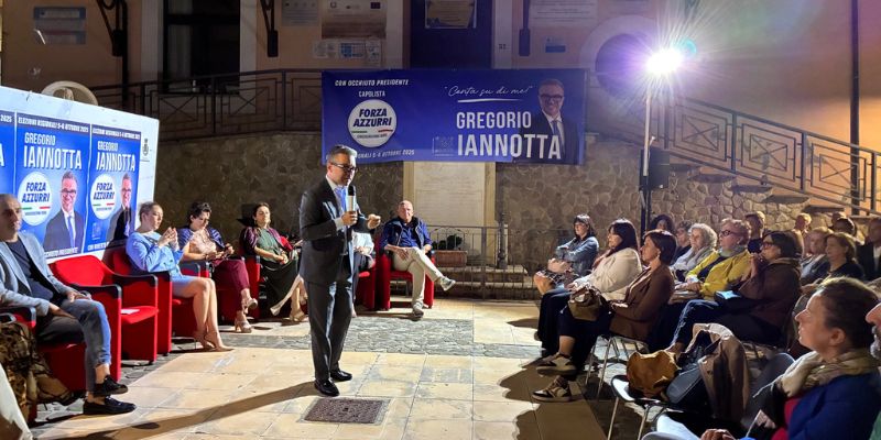 Una piazza gremita ha accolto ieri sera il primo comizio di Gregorio Iannotta, sindaco di San Vincenzo La Costa e capolista di Forza Azzurri nella circoscrizione Nord alle prossime elezioni regionali. Una comunità stretta attorno al suo sindaco, con l’intera squadra amministrativa presente a testimoniare sostegno, in una serata che ha avuto il segno della partecipazione civile.