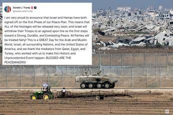 (Adnkronos) – Prima l'annuncio di Donald Trump, poi la conferma alla stampa dei mediatori nei negoziati. Israele e Hamas hanno raggiunto nella notte l'accordo per l'attuazione della prima fase del cessate il fuoco per Gaza. Secondo quanto riportano le tv israeliane, la firma che sancisce la tregua potrebbe arrivare già in mattinata, alle 11 ora italiana. Annunciando l'accordo di pace in Medio Oriente su Truth, Trump ha spiegato che "questo significa che tutti gli ostaggi saranno rilasciati molto presto e Israele ritirerà le sue truppe secondo una linea concordata, come primo passo verso una pace forte, duratura e duratura. Tutte le parti saranno trattate equamente". "Questo – ha continuato – è un grande giorno per il mondo arabo e musulmano, Israele, tutte le nazioni circostanti e gli Stati Uniti d'America, e ringraziamo i mediatori di Qatar, Egitto e Turchia, che hanno collaborato con noi per rendere possibile questo evento storico e senza precedenti". Secondo quanto riportano fonti della Casa Bianca alla Cnn, il rilascio degli ostaggi israeliani in mano ad Hamas potrebbe iniziare lunedì, anche se è possibile che i tempi possano essere anticipati. Un funzionario ha delineato la tempistica prevista, a partire dalla presentazione dell'accordo al governo israeliano: "Una volta votato sì, Israele dovrà ritirarsi sulla linea, il che dovrebbe richiedere meno di 24 ore", ha detto il funzionario. "Poi inizierà il periodo di 72 ore e Hamas cercherà di ritirarsi prima, se possibile". Israele rilascerà circa 2.000 prigionieri palestinesi in cambio di 20 ostaggi vivi, ha dichiaratopoi all'Afp un alto funzionario di Hamas, aggiungendo che fra i detenuti vi sarebbero 250 ergastolani e altre 1.700 persone arrestate dall'inizio della guerra. Lo scambio dovrebbe avvenire entro 72 ore dall'attuazione dell'accordo, che è stato "concordato anche con le fazioni palestinesi". Una fonte palestinese ha dichiarato al canale saudita Al-Sharq che il rilascio degli ostaggi e dei prigionieri detenuti da Israele inizierà "entro 72 ore dall'entrata in vigore dell'accordo". L'emittente cita fonti ben informate, secondo cui questo avverrà la prossima settimana. Un altro canale saudita, Al-Hadath, riferisce che il conto alla rovescia di 72 ore per il rilascio degli ostaggi inizierà dopo che le truppe israeliane si saranno ritirate secondo le linee concordate a Gaza, il che avverrà una volta che l'accordo sarà ratificato da Israele. L'accordo prevede "ritiri programmati" delle truppe israeliane, ha dichiarato la fonte dell'Afp, e include "garanzie da parte del presidente Trump e dei mediatori". La fonte palestinese citata da al-Sharq afferma che, in base all'accordo, le forze israeliane si ritireranno dal valico di Rafah e dalle sue vicinanze e che l'accordo prevede anche il trasferimento di pazienti e feriti palestinesi in Egitto per le cure; inoltre, il valico di Rafah sarà aperto in entrambe le direzioni una volta che l'accordo entrerà in vigore. Nei primi cinque giorni del cessate il fuoco entrerebbero nella Striscia di Gaza almeno 400 camion di aiuti al giorno, per poi aumentare nei giorni successivi. E' inoltre previsto il “ritorno immediato degli sfollati dal sud della Striscia di Gaza a Gaza City e nel nord”. Trump sarà quindi in Israele nei prossimi giorni, intenzionato ad accogliere l'invito del primo ministro israeliano Benjamin Netanyahu a intervenire alla Knesset. In una dichiarazione ad Axios, il presidente Usa ha annunciato: "Si prevede che arriverò in Israele nei prossimi giorni. Questo è un grande giorno per Israele e per il mondo. Vogliono che parli alla Knesset e lo farò sicuramente se lo vorranno". Quanto alla telefonata con Netanyahu dopo il raggiungimento dell'accordo tra Israele e Hamas, Trump afferma: "La mia conversazione con Bibi è stata fantastica. È felice, e giustamente. È un grande risultato. Il mondo intero si è unito per raggiungere questo accordo, compresi i paesi che un tempo erano nemici". "Con l'aiuto di Dio li riporteremo tutti a casa", le parole del premier israeliano Netanyahu, che ha quindi convocato il governo per approvare l'accordo su Gaza. Il ministro delle Finanze israeliano, l'esponente dell'estrema destra Bezalel Smotrich, ha però reso noto di essere contrario al piano di pace e che voterà contro. "C'è una paura immensa delle conseguenze dello svuotare le prigioni e del rilascio della prossima generazione di leader terroristi che faranno il possibile per proseguire gli sforzi per versare sangue degli ebrei nei fiumi", le parole su X, "Anche solo per questa ragione, non possiamo partecipare ai miopi festeggiamenti o voti in favore dell'accordo", ha scritto. "In questo momento il cuore di Israele batte all'unisono con gli ostaggi e le loro famiglie. Come scrisse il profeta Geremia: 'Torneranno dalla terra del nemico… e i figli torneranno ai loro confini'", il post su X il presidente israeliano, Isaac Herzog. Le famiglie degli ostaggi israeliani a Gaza hanno intanto scritto aTrump per ringraziarlo per aver favorito l'accordo con Hamas e per chiedergli di poterlo incontrare personalmente in occasione della sua prossima visita nella regione Le Idf hanno intanto avviato i preparativi per il ritiro parziale dalla Striscia. In una nota, le Forze di difesa israeliane fanno sapere che, "in base alle direttive politiche e alla valutazione della situazione, le Idf hanno iniziato i preparativi operativi per l'attuazione dell'accordo". Nell'ambito di questi preparativi, le Forze di difesa sono pronte a spostare le truppe "nel prossimo futuro" verso "le linee di schieramento concordate", precisando che "continueranno a essere dispiegate nell'area e a prepararsi per qualsiasi sviluppo operativo". "L'area a nord di Wadi Gaza è ancora considerata una pericolosa zona di combattimento, l'Idf continua a circondare Gaza City e ritornare è estremamente pericoloso". Questo il messaggio rivolto poi ai palestinesi dall'Idf dal portavoce di lingua araba, Avic