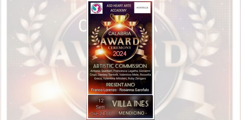 Giovedì 12 settembre, alle ore 21:00, nella favolosa location di Villa Ines a Mendicino, serata di gala per la consegna degli Awards “Calabria 2024”. La manifestazione, ha lo scopo di risaltare la cultura calabrese attraverso la valorizzazione delle migliori eccellenze del territorio che con il loro lavoro, la loro opera quotidiana coniugano alla perfezione lo slogan “Calabria Terra di Cultura”.