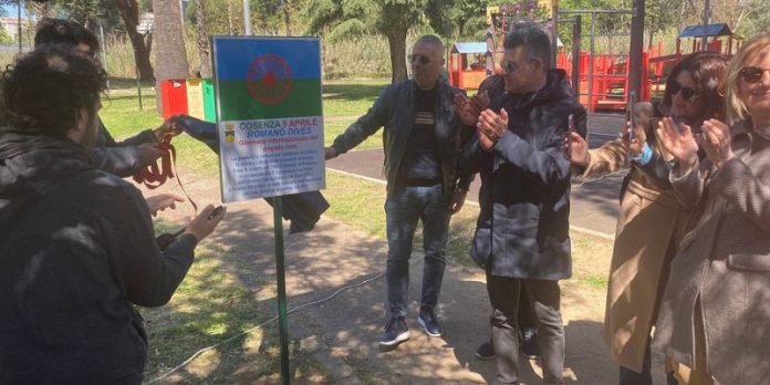 Un tributo importante alla cultura, alla storia e ai diritti delle comunità romanès. E’ quello che la città di Cosenza, su iniziativa del Presidente del Consiglio comunale, Giuseppe Mazzuca, ha promosso questa mattina con una cerimonia svoltasi al Parco Nicholas Green dove è stata collocata e svelata una targa in occasione della Giornata internazionale del popolo rom, che ricorre proprio oggi e che fu indetta nel 1990 a Serock, in Polonia, in occasione del 4° congresso mondiale dell’Unione internazionale dei Rom (IRU), in ricordo del primo grande incontro internazionale tenutosi a Londra nel 1971.